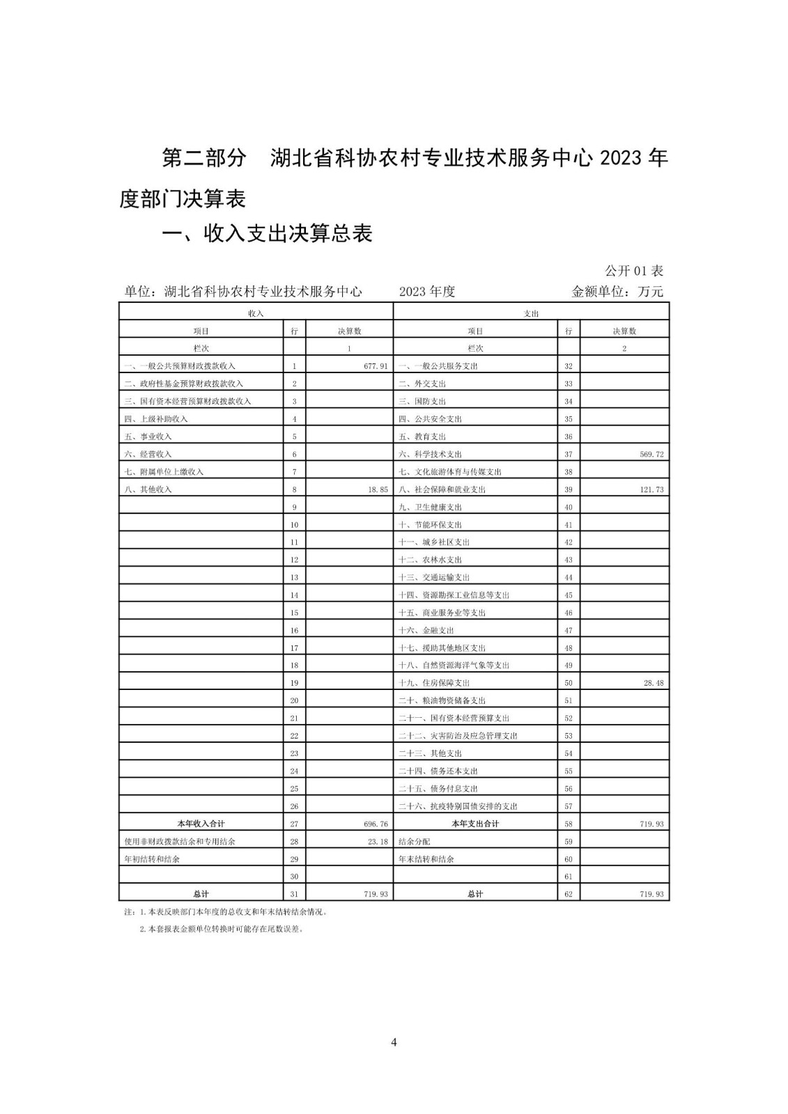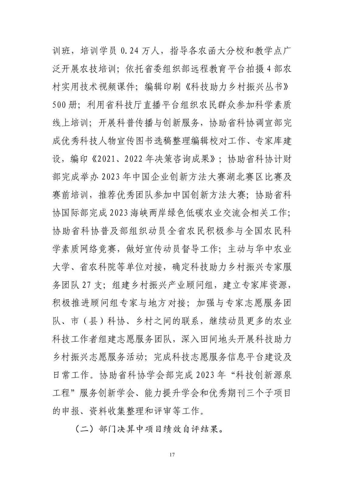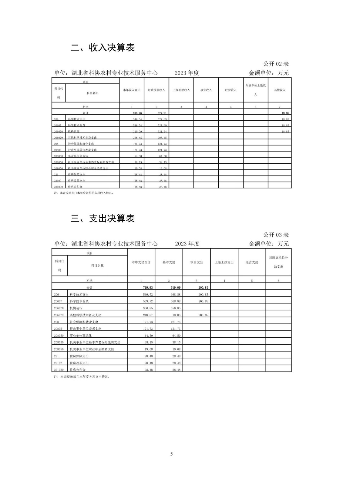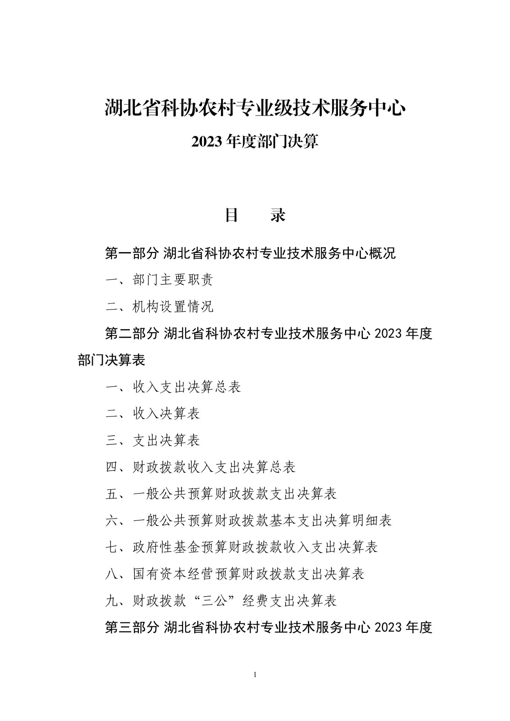 湖北省科协农村专业级技术服务中心2023年度部门决算