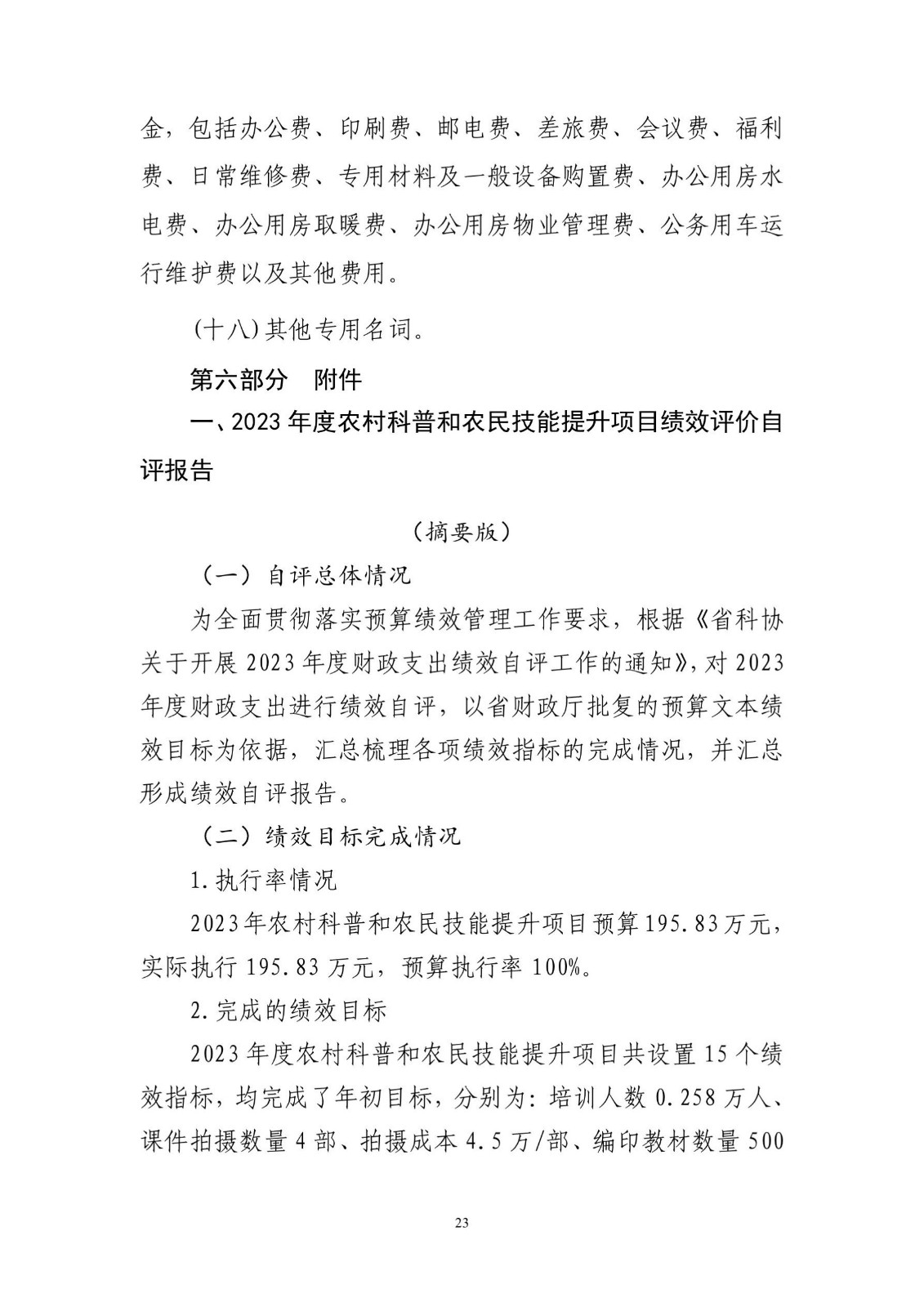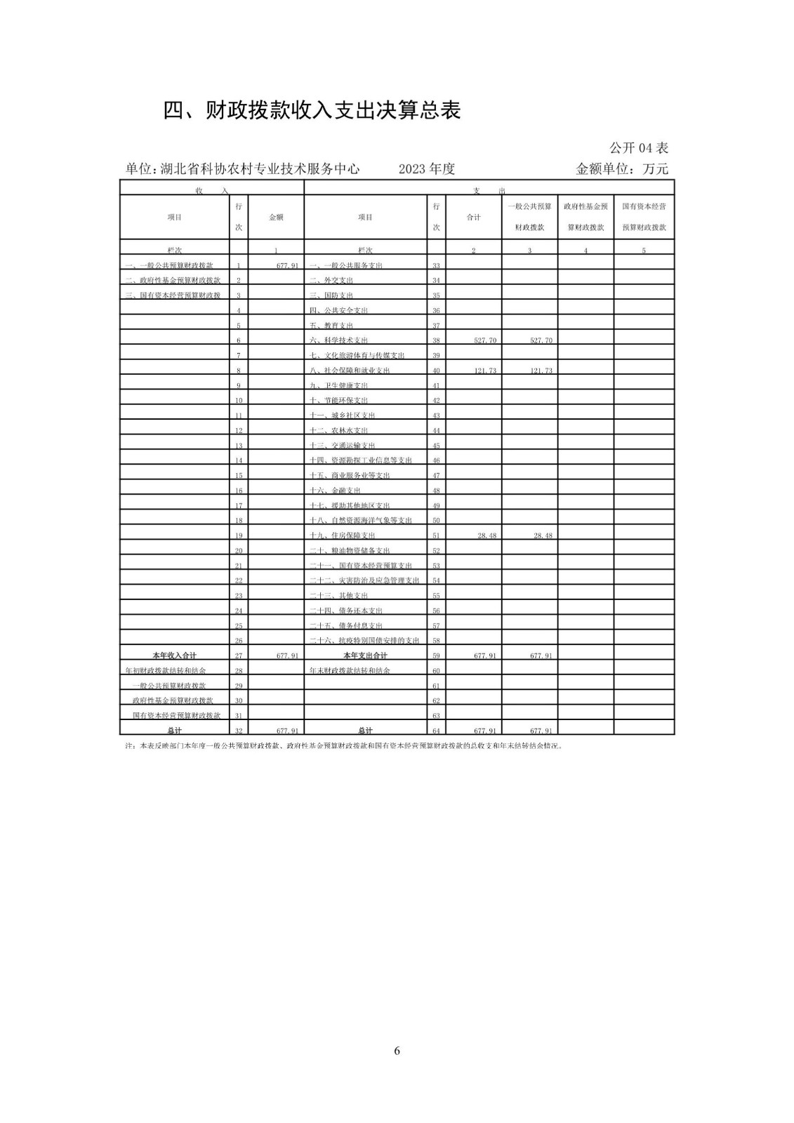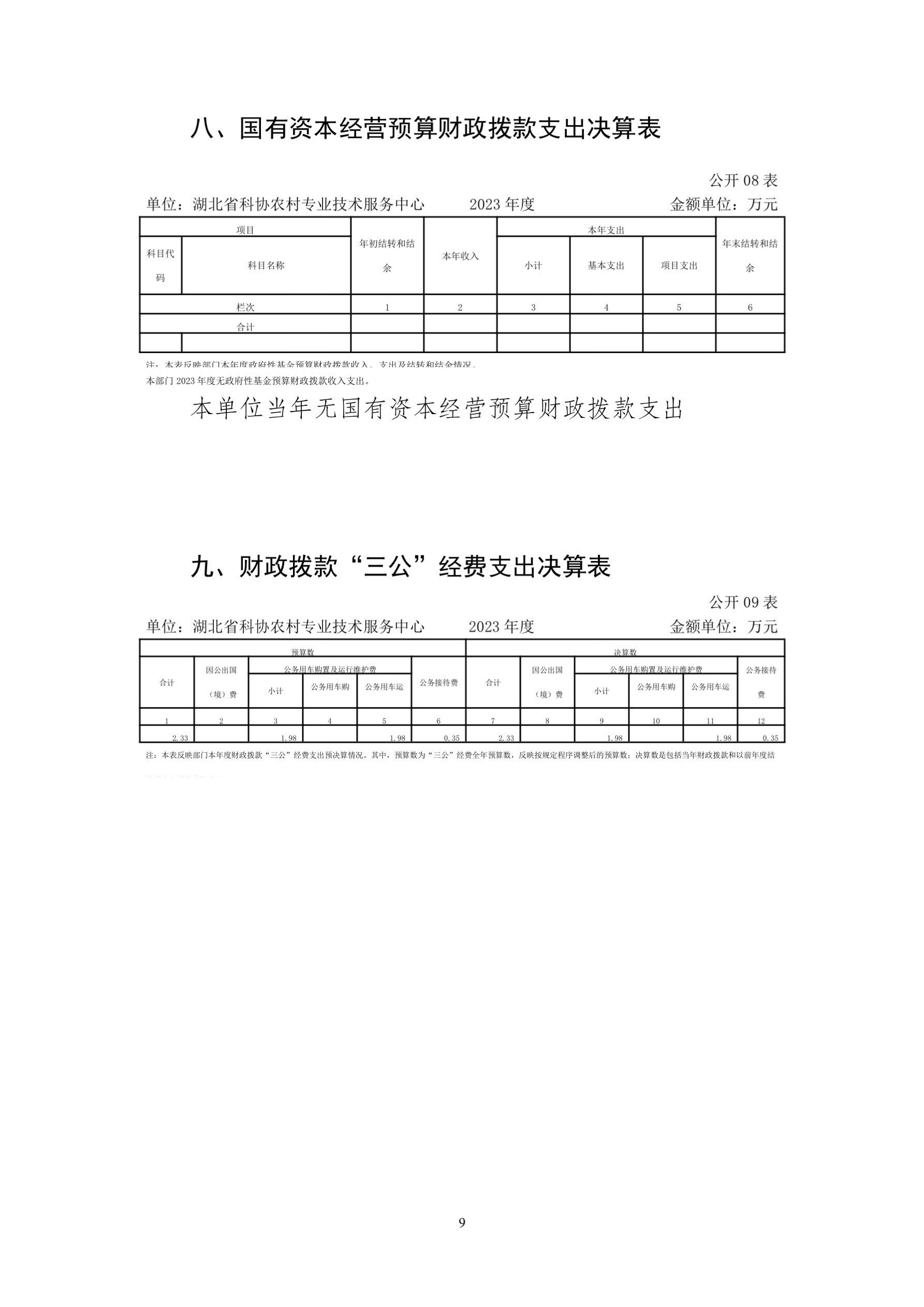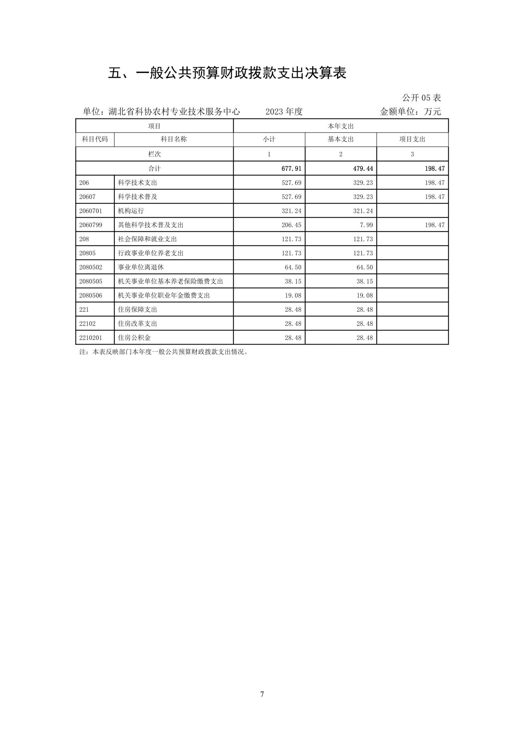 湖北省科协农村专业级技术服务中心2023年度部门决算
