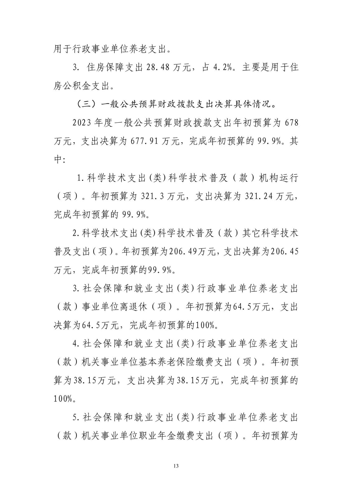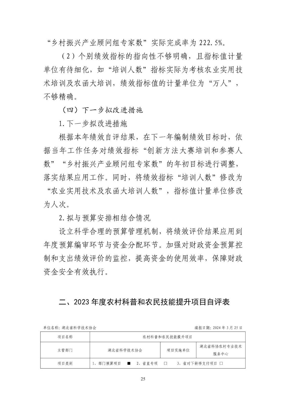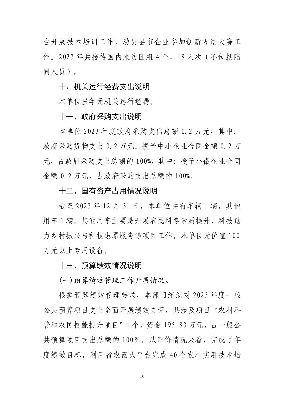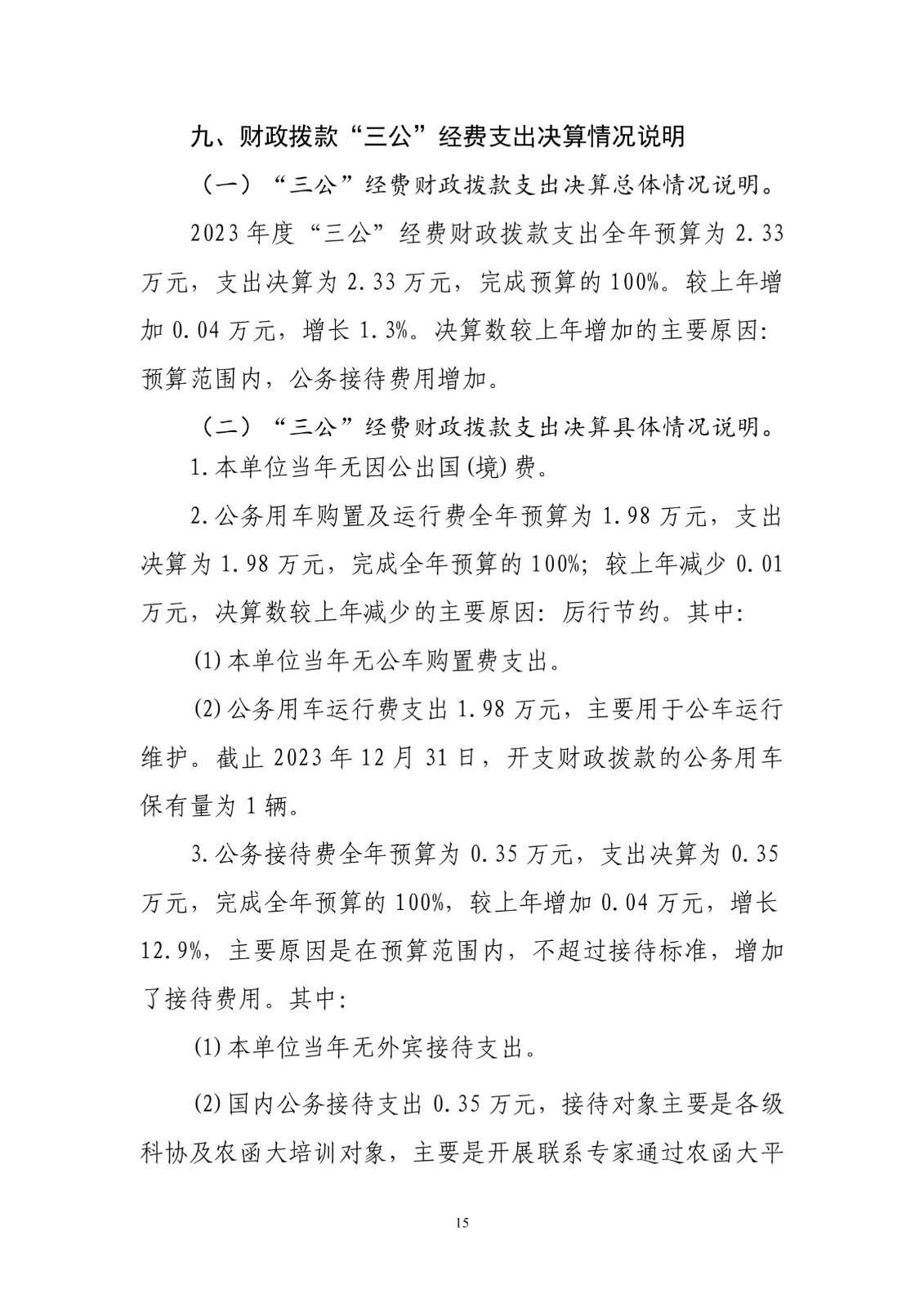 湖北省科协农村专业级技术服务中心2023年度部门决算