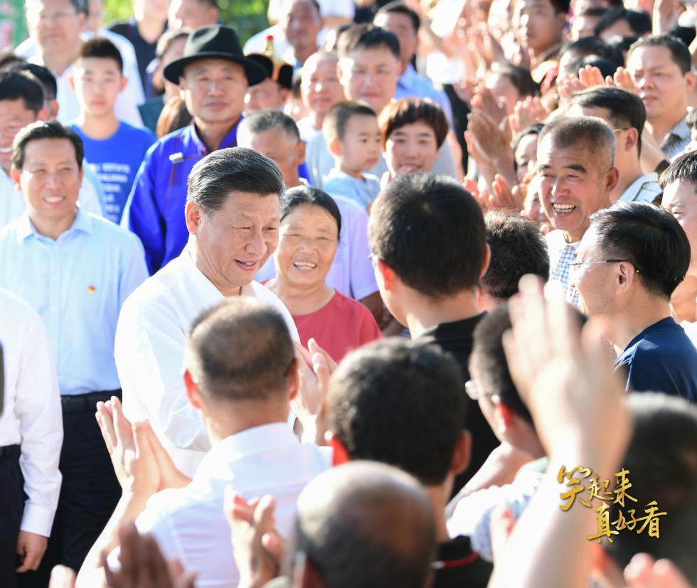 △2019年7月15日,习近平总书记赴内蒙古自治区考察调研,在赤峰市喀喇沁旗河南街道马鞍山村同群众亲切握手。