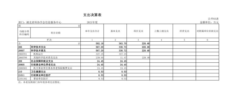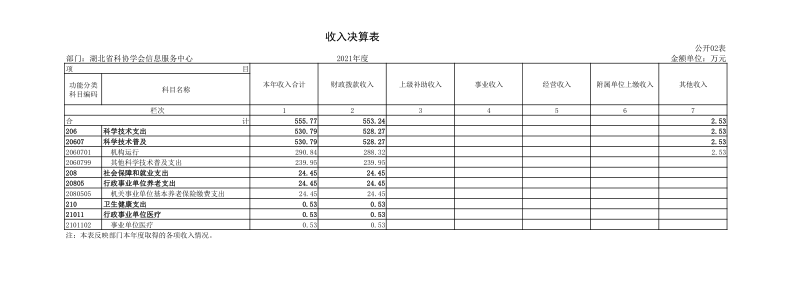 第二部分 湖北省科协学会信息服务中心2021年度部门决算表