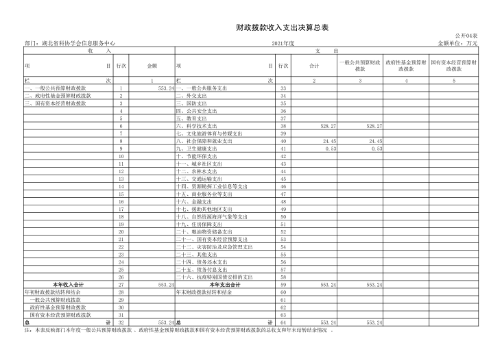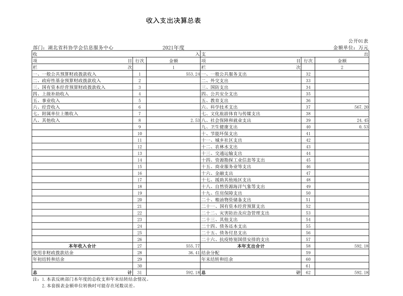 根据部门决算公开有关要求,按照《省财政厅关于批复2021年度部门决算的通知》(鄂财办发〔2022〕5号)的批复数据,现将省科协学会信息服务中心2021年部门决算公开,并予以说明如下。