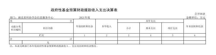 省科协学会信息服务中心2021年度无政府性基金财政拨款收入支出。