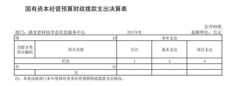省科协学会信息服务中心2021年度无国有资本经营预算财政拨款支出。