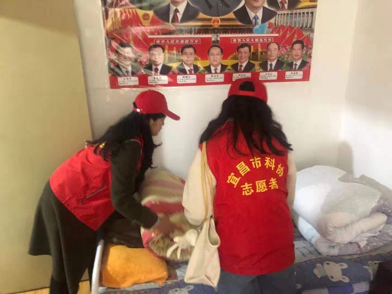 志愿者一行人来到辖区孤寡老人、残疾人家中,帮助他们打扫卫生、排查用气用电隐患、宣传防电信诈骗小常识。
