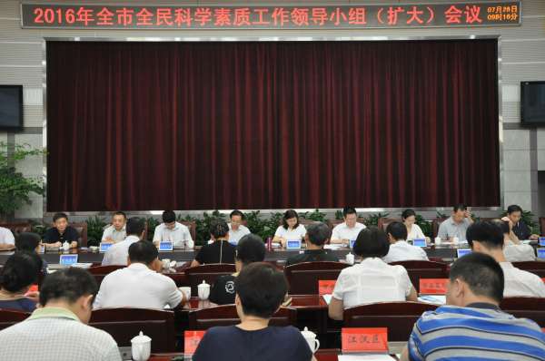 7月28日,武汉市2016年全民科学素质工作领导小组(扩大)会议在市政府召开。市全民科学素质工作领导小组组长、副市长刘英姿出席会议并讲话。各成员单位分管领导,各区人民政府分管区长,区全民科学素质工作领导小组办公室主任参加了会议。会议由市人民政府副秘书长姜铁兵主持。
