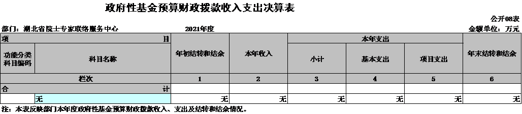 省院士专家联络服务中心2021年度无政府性基金财政拨款收入支出。