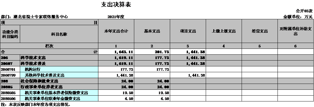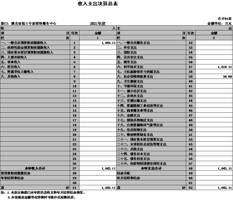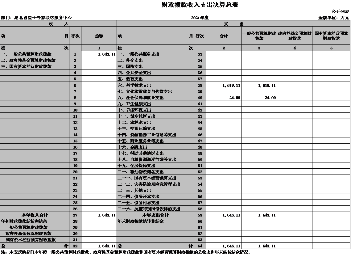 第二部分 湖北省院士专家联络服务中心(湖北省院士战略咨询中心)2021年度部门决算表