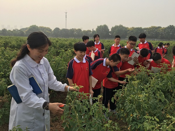 “这边一大片种的是保加利亚大马士革玫瑰,是从云南引进过来的,也是非常有名的一个玫瑰品种,女孩子们所熟知的香奈儿5号香水就是由这种玫瑰提取加工制造出来的”。这是襄阳市农科院的老师在给同学们介绍玫瑰的基本知识,同学们认真听着老师讲解,还详细做了记录。
