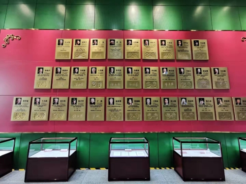 紧挨着这些“大国重器”的是“科学家精神”展区。在那里,“国家最高科学技术奖手模墙”集中展示了30余位国家最高科学技术奖获得者的珍贵手模或签名。