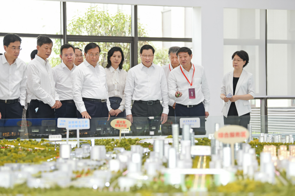 在湖北东湖科学城展示中心,省领导详细了解科学城规划建设和大科学装置布局等情况。