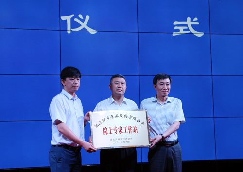 活动现场,省科协党组成员、秘书长余军为潜江市湖北虾乡食品股份有限公司院士专家工作站授牌,潜江市政府副市长刘冰、湖北虾乡食品股份有限公司总经理刘军接牌。潜江市委书记黄剑雄致欢迎辞,他说潜江市将以本次高峰论坛为契机,认真学习先进的理念,充分汲取大家的智慧,坚决落实战略合作协议,全力支持院士专家工作,加快推进以虾稻为核心的绿色食品产业发展,奋力打造全国虾-稻产业第一市。