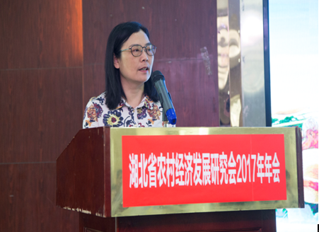湖北省科协副巡视员李莹代表省科协发表了热情洋溢的讲话,她说,向长期致力于农村经济发展研究的科技工作者致以诚挚的问候!作为科技工作者,要紧紧围绕我省农村经济发展中的热点与难点问题,通过搭建学术交流平台、广泛开展“三农”调查研究、提供科技咨询服务、不断开拓创新,为助推湖北省农村经济发展做出更大的贡献。同时希望湖北省农村经济发展研究会发扬传统,主动作为,不断加强自身建设,充分调动广大会员的积极性、主动性和创造性,围绕供给侧结构性改革,开展好先导性、战略性研究,组织好重大问题协同性公关,持续为湖北经济社会的发展增添新活力。