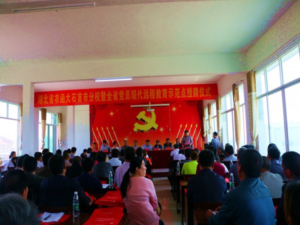 石首市大垸镇位于石首市北部,农业人口均占石首市的九分之一,经多年发展,初步形成"水产、水稻、棉花、油菜、蔬菜"等五大产业的发展格局。为普及科学技术,提升农民素质,助力精准扶贫。荆州市科协与湖北省农函大主动衔接,决定在石首市大垸镇新沟村成立全省党员现代远程教育示范点、湖北省农村致富技术函授大学石首市分校。5月11日上午,湖北省委组织部党员教育中心调研员周艾茗、荆州市委组织部远程办主任禹家葵为全省党员现代远程教育示范点授牌,湖北省科协农函大常务副校长陈玫妮与荆州市科协党组书记、主席邵振东为湖北省农村致富技术函授大学石首市分校授牌。