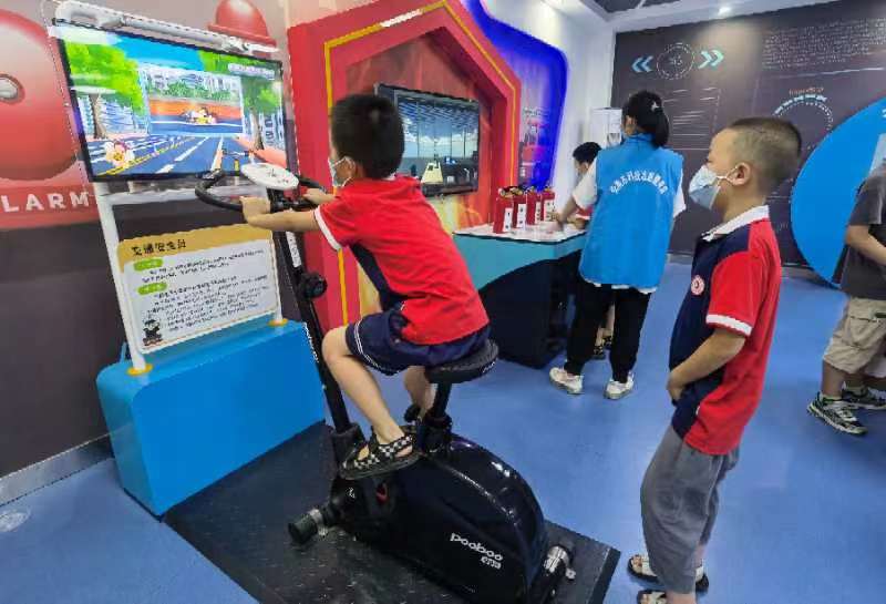 轻点屏幕体验3D模拟灭火,骑上脚踏车实景体验交通安全,操作鼠标看看“未来的你”……暑假期间,市科技馆按照疫情防控要求,合理控制人流,安排科普志愿者值班讲解,力求通过形式多样的实验活动激发孩子们探索科学的兴趣,让孩子们在互动中感受科学魅力,在思考中启迪科学智慧,获得关于客观世界的感性认识。
