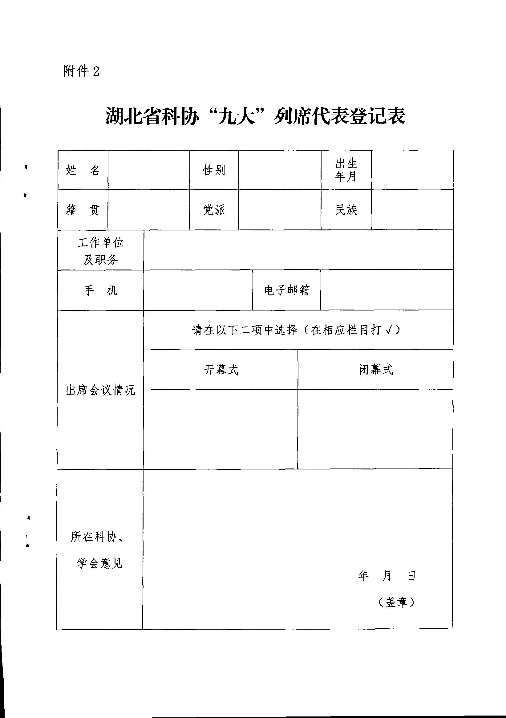 关于做好湖北省科协“九大”特邀代表、列席代表人选信息报送工作的通知
