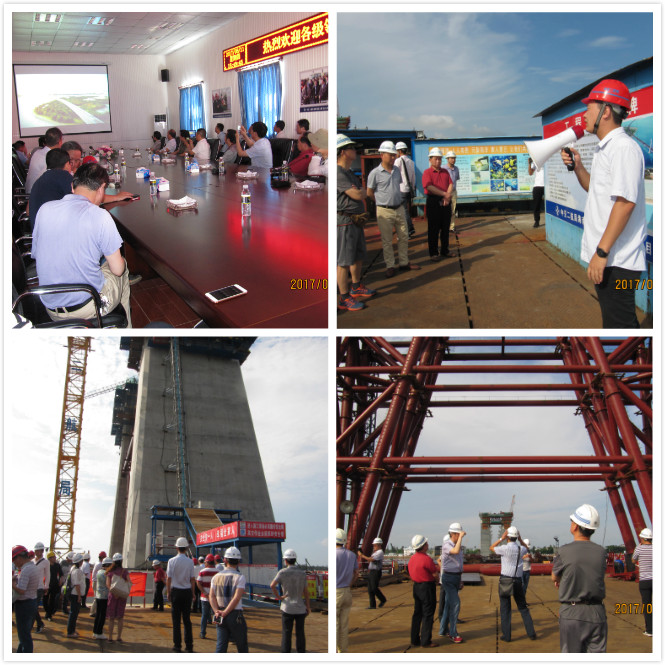 这次活动得到了中国公路工程咨询集团有限公司、中交第二公路勘察设计研究院、中交二航局项目部的大力支持。在中交二航局项目部驻地,受到了中咨集团、中交二航局项目部领导和同志们的热烈欢迎,在会议室观看了大桥施工的视频,在大桥施工现场进行了实地参观、学习,代表们提出的一些技术问题,二航局项目部的黄总工程师一一作了解答。
