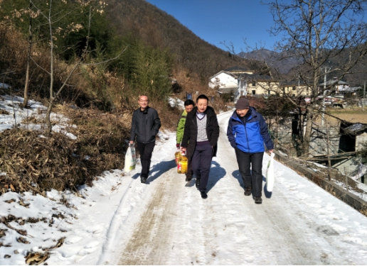 2月5日,神农架林区科技局党组书记陈光永、局长张宏、科协专职副主席杨大平等一行,深入松柏镇八角庙村,为精准扶贫户送去油、米、面粉等慰问物资,在节前将党和政府的温暖送到困难群众手中。(神农架科协 杜爱华)