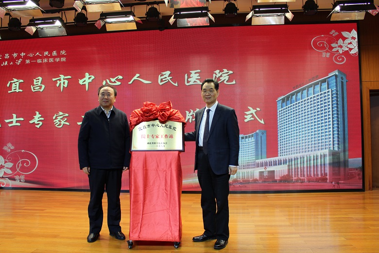 12月17日,宜昌市中心人民医院院士专家工作站揭牌仪式在宜昌市中心人民医院学术报告厅举行。仪式由宜昌市卫生计生委党组书记顾昱主持,市政府副市长刘洪福与中国科学院院士陈孝平共同为院士专家工作站揭牌。