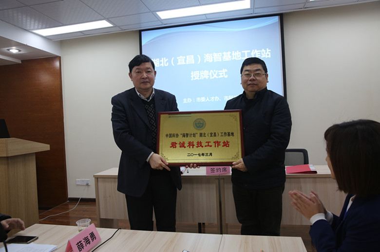 3月9日,宜昌市委人才办、市科协在西陵区高新产业孵化中心、宜昌君诚科技技术服务有限公司2家单位建立了中国科协“海智计划” 湖北(宜昌)基地工作站。西陵区副区长孙杨,高新区工委委员、组织部长刘显成分别在授牌仪式上致辞,市科协学会部部长薛海勇对近年来海智工作情况作了简要介绍,市委组织部人才科正科职干部李颖宣读了建站通知,市科协副主席曾勇分别向两家工作站的负责人授牌,并签订了工作责任书。西陵区委组织部、宣传部、政府办、科协、经济开发区管委会,高新区组织部、科创局参加了授牌仪式。
