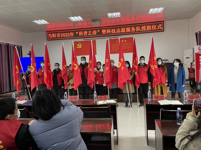 启动仪式上,当阳市科协主席王芳为全市十个镇(街道)科技志愿队授旗,并在讲话中提出,在全市新时代文明实践中心建设中,广大科技工作者是不可或缺的重要力量。要以科技志愿者服务队成立和授旗仪式为契机,充分发挥“主力军”作用,开展形式多样的科技志愿服务活动,成为新思想的宣传员、科学技术“普及员”、乡村振兴“助攻手”,真正为群众办实事、解难事、做好事,叫响科技志愿服务品牌。