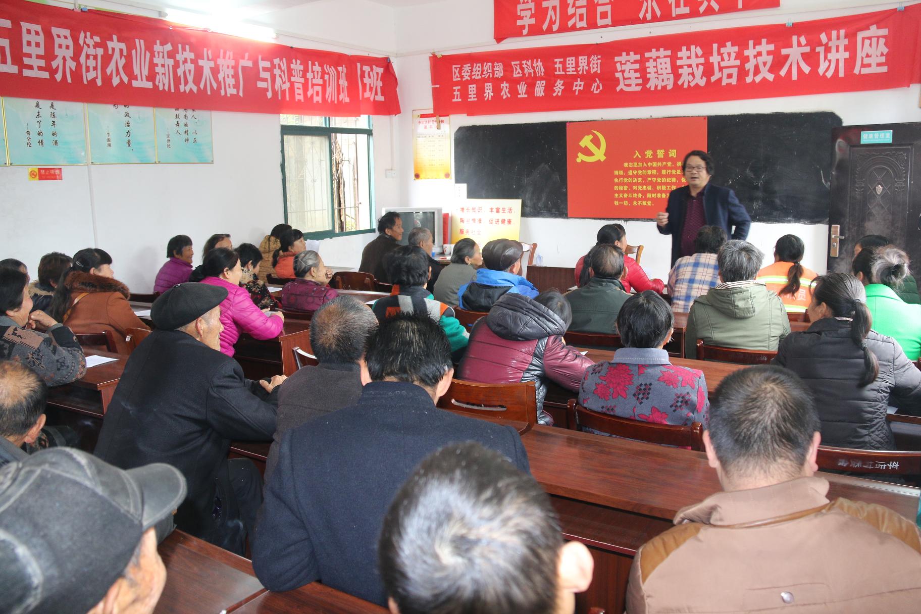 江夏区五里界街李家店村位于梁子湖畔,水资源丰富,基本家家种植江夏子莲,根据农民生产需求,为解决农民在子莲种养中遇到的生产难题。3月23日,区委组织部、区科协、五里界街在李家店村党员群众服务中心组织开展了一期“江夏子莲栽培与管理”培训班,培训邀请了武汉市农科院蔬菜研究所正高职高级农艺师刘义满为村民授课。刘教授详细询问了村民种植子莲的情况,向村民分析了今年子莲种养的市场行情,具体讲解了“藕带、莲蓬、枯莲子、莲藕”等经济产物的栽培要点,重点推广了子莲采摘经济,建议村集体围绕子莲产业,发展观光农业,提升农业附加值。