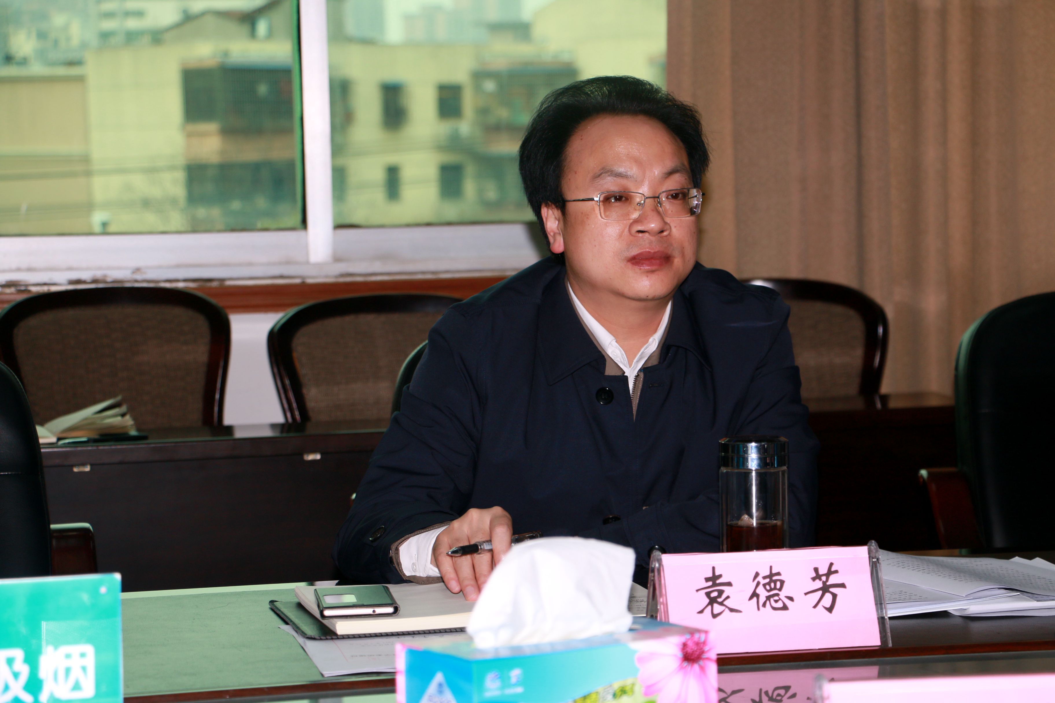 在调研座谈会上,袁德芳同志听取了市科协党组书记、主席邵振东同志的工作情况汇报和副主席刘友斌关于科技馆搬迁计划及设想的情况汇报。
