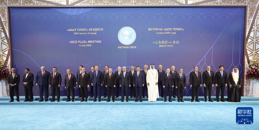当地时间7月4日下午,国家主席习近平在阿斯塔纳出席“上海合作组织+”阿斯塔纳峰会并发表题为《携手构建更加美好的上海合作组织家园》的重要讲话。新华社记者 庞兴雷 摄