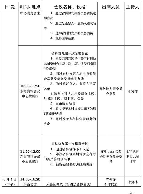 省科协第九次代表大会日程安排
