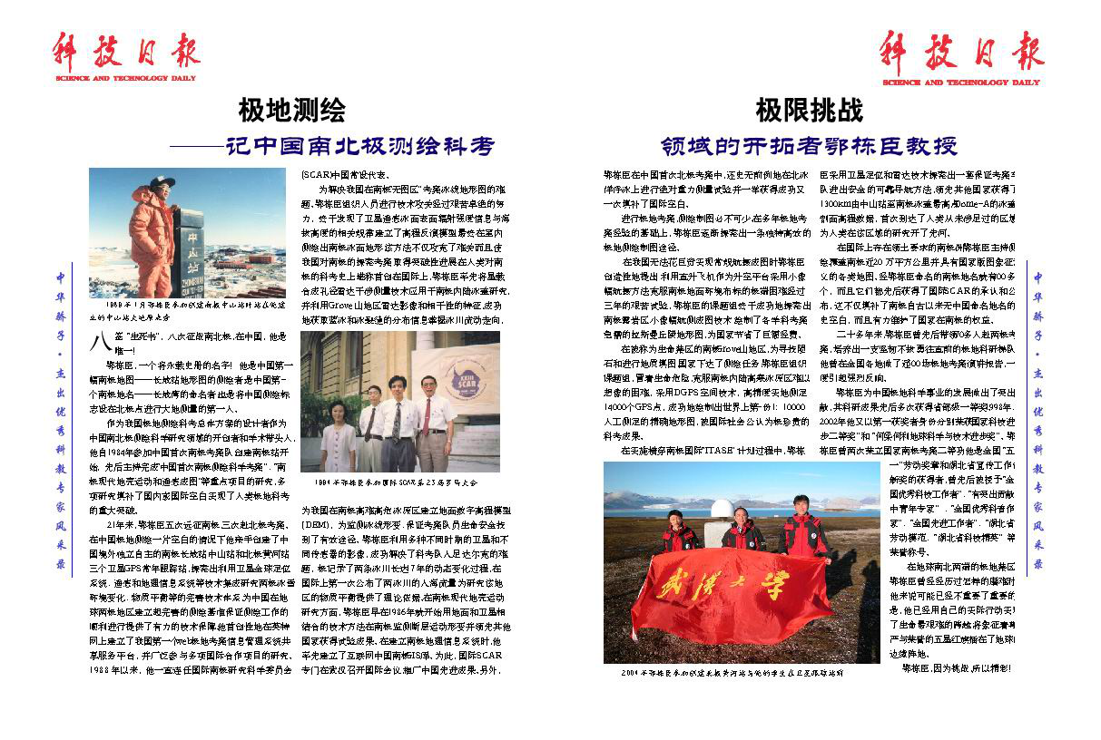 1992年4月8日至5月15日,中国科技馆和湖北科技馆在科教大厦举办了南极科学考察展览,展出了鄂栋臣所在团队几次赴南极考察的多件珍贵实物、图证。 湖北省南北极科学考察学会理事长、国际南极研究科学委员会地学科学组中国代表、武汉大学教授、博士生导师鄂栋臣(国际欧亚科学院院士)7次远征南极,4次奔赴北极,是参加我国南北两极长城站、中山站、黄河站三站创建工程的全国唯一亲历者,是我国基地测绘遥感科考总体方案的设计者,主持了28个中国极地测绘科研重点项目。 2004年7月28日,鄂栋臣与武汉大学科技工作者参加了中国首座北极GPS卫星跟踪站的建设并进行了数据接收。