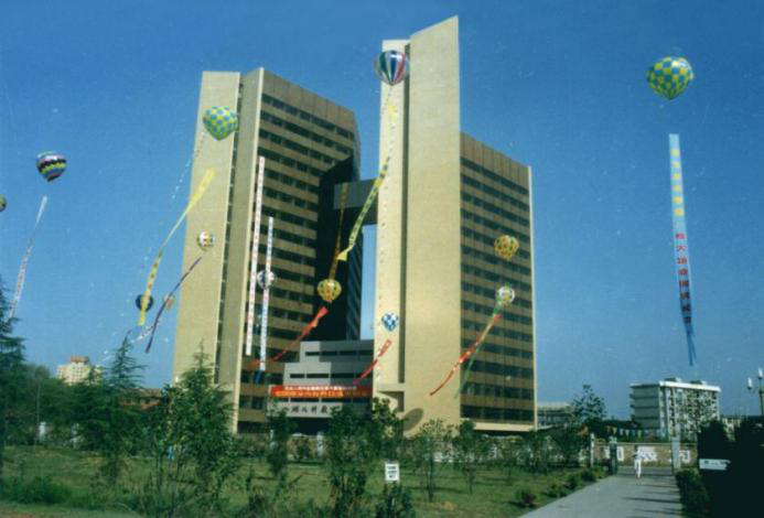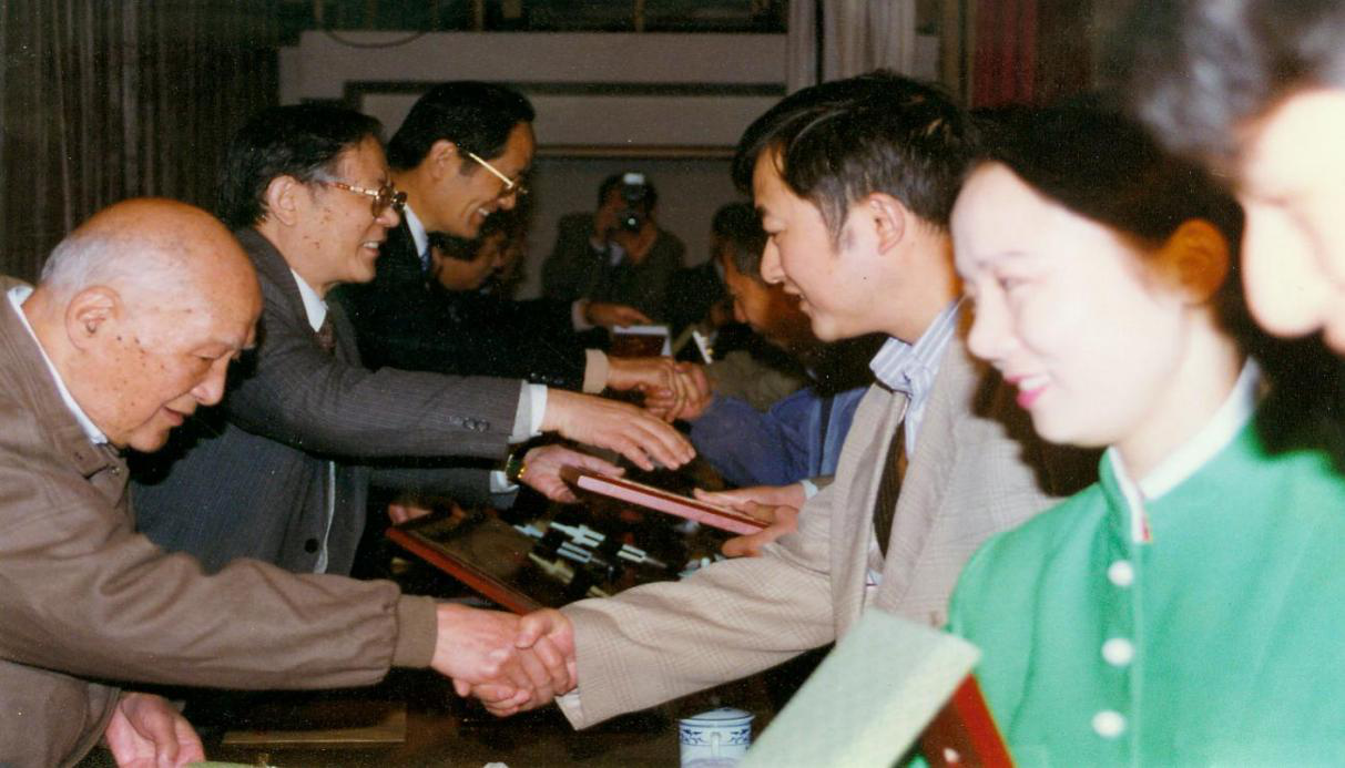 1997年10月27日省委副书记杨永良、中国科协主席周光召、著名科学家王之卓为获全省金桥工程奖的优胜单位颁奖