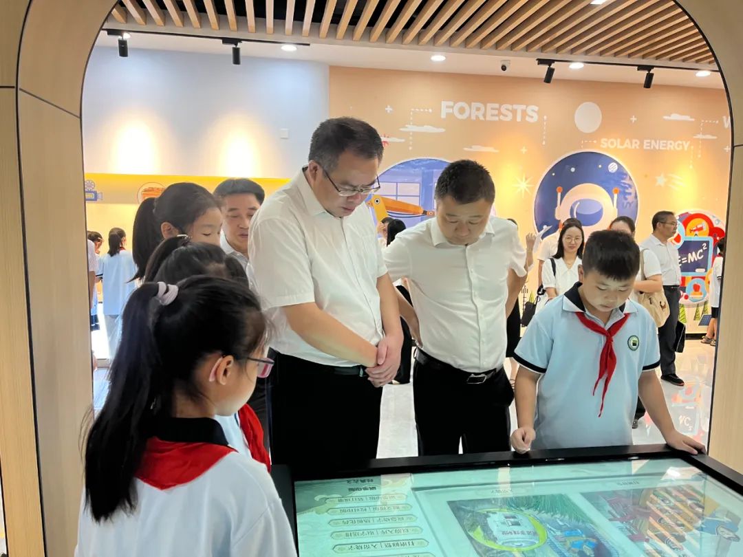 启动式结束后,与会人员一起参观主场系列科普活动。活动现场在毕昇小学科技馆设立12个科普展区,包括创客教室、活字印刷术体验、科技画作品展、AR体验等。