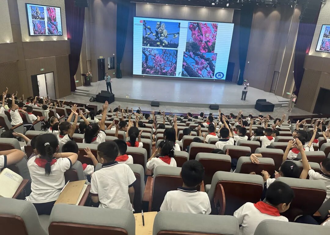 在科普报告会、科普实验秀活动中,黄冈师范学院方元平教授以《浠水植物之美》为题为同学们带来了一场精彩的科普知识讲座。湖北省科技馆专技人员施展“科学魔法”,上演了“马德堡半球”、“火焰掌”、“大象牙膏”、“气球摩天轮”等一系列精彩绝伦的实验。神奇的化学反应,有趣的物理变化,一个个科普实验秀将原本枯燥乏味的理论知识瞬间转化为妙趣横生的实践表演,同学们踊跃参与,积极登台体验,整场演出精彩不断,掌声不停,高潮迭起!欢呼声、呐喊声、尖叫声,燃爆整个会场! 活动通过“线下报告+线上直播”方式同步开展,县第四实验小学教联体“一联六区”6000余名师生通过直播在线观看,在寓教于乐中感受科技创新力量。